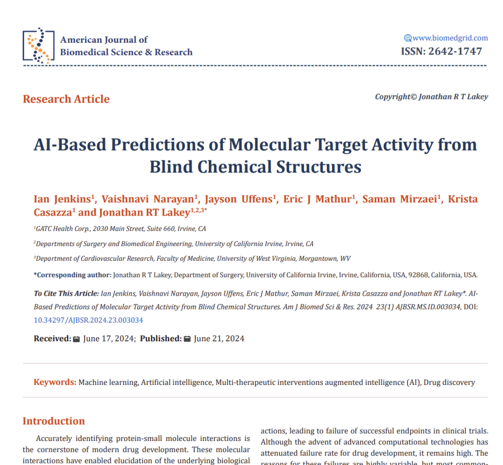 GATC recently released a study showing that its platform can successfully predict drug success with 88% accuracy, and importantly, forecast drug failure with an unprecedented 84% accuracy rate. With vast improvements in both speed and accuracy, GATC has proven an 11x increase over the current industry lead optimization success rate of approximately 8%.